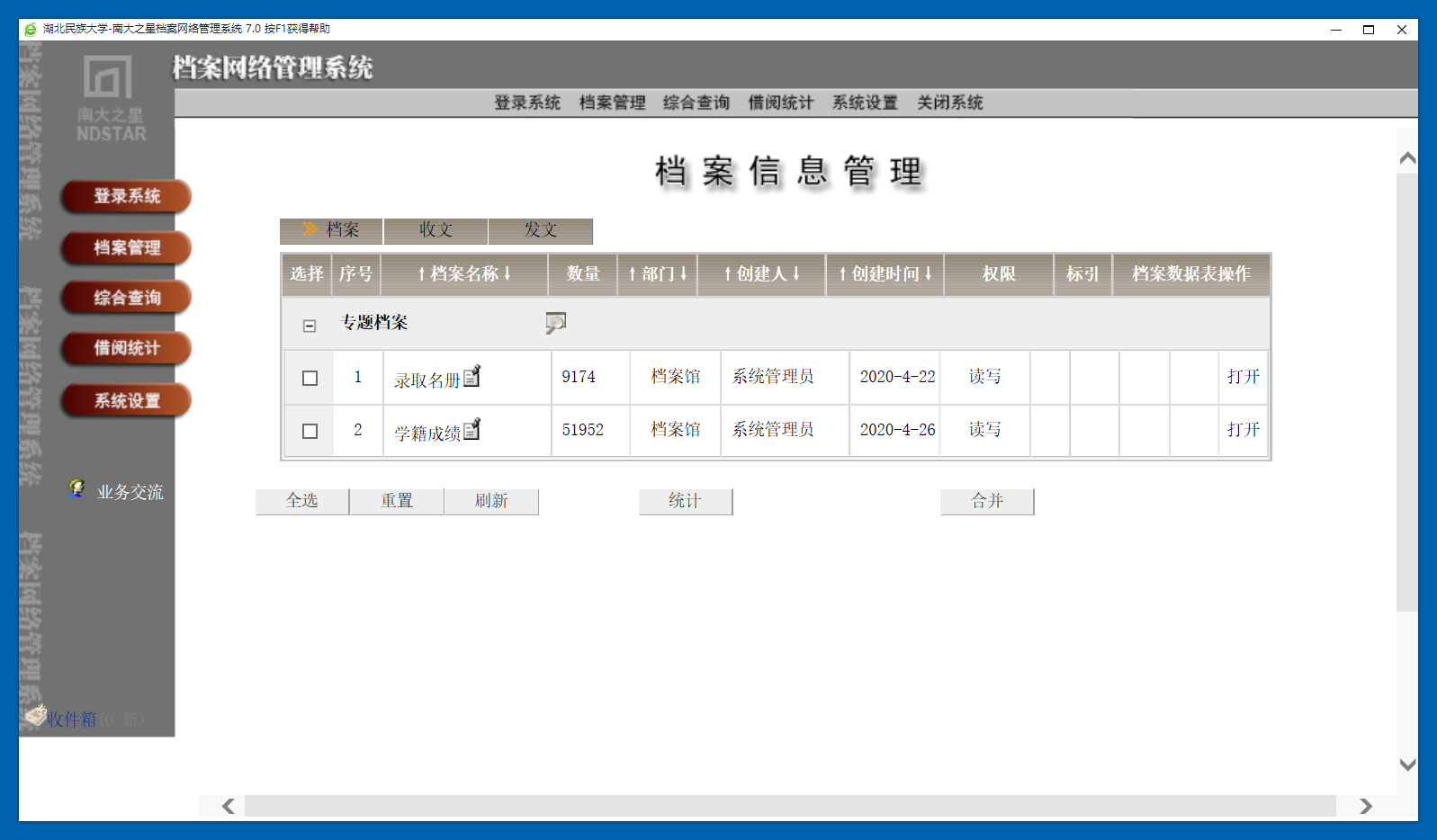 为提升档案查阅、检索及调取效率,档案馆全体人员通过自建及外包模式,通过近半年的努力,对我校1979年以来的录取名册、1994年以来的学籍表、成绩单进行了数字化加工,现已建成录取及学籍成绩档案专题数据库,该数据库主要面向我校学生在学历学位认证、事业单位报考、公务员录用、出国等领域,一方面可现场打印扫描件,一方面可通过网络方式提供扫描件,极大提升了查档效率,也为我校学生调用相应档案搭建了更便捷的平台。另外在今年的学生学历学位信息清查中,配合公安、教育、监察部门的调查取证发挥了重要作用。