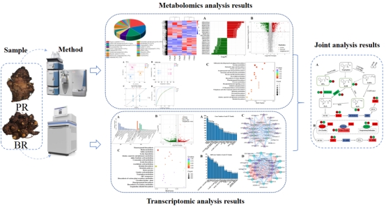 该研究利用转录组和代谢组学方法鉴定出了主根茎与分枝根茎中显著差异的关键基因、转录因子以及次生代谢物,鉴定出1220种差异代谢物与36,204个差异表达基因,其中色氨酸代谢及次生代谢途径尤为突出。分枝根茎中IAA前体及多类次生代谢物更为丰富,同时生长素与细胞分裂素相关基因普遍下调。并指出主根茎更适宜鲜制与工业加工,而分枝根茎因代谢物积累更丰富更具药用开发潜力。
