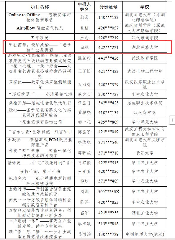 2025-11-06 08:35:43 点击量:近日,湖北省人力资源和社会保障厅公示2025年度湖北省大学生创业扶持项目创意组“金点子”项目名单,我校《鹿小染——中国巴楚非遗传承“摩尼扎染”产业的践行者》《基于富硒罗汉果的功能性产品研发与产业化运用》和《影驻韶华,镜纳桑榆——“老来俏”公益摄影》三项创业项目成功入选。