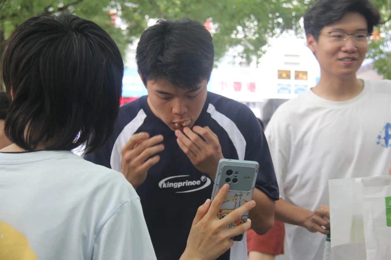 本次创客集市的项目团队成员均为民大在校大学生,项目涵盖书法艺术、非遗文创、中医推拿、特色美食等多种类别。在活动现场,美食的香气扑鼻而来,令人垂涎欲滴;艺术创作的摊位前,一幅幅作品色彩斑斓;“一分钟吃完一片面包”小游戏,挑战者们纷纷拼尽全力。