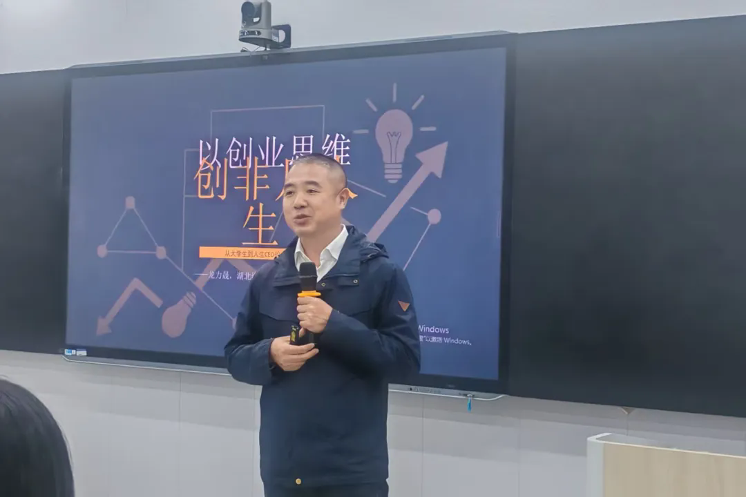 2025-10-23 20:36:00 点击量:10月23日下午,创新创业教育学院于修远楼5A707教室成功举办第三十一期创享沙龙,主题聚焦“创业维艰,智见未来”。活动特邀中国农业大学经济管理硕士、高级经济师,湖北维冠智显科技有限公司董事长、深圳维冠集团创始人、深圳市高层次专业人才(后备级)、教育部全国万名创新创业入库导师、恩施州慈善总会副会长龙力晟先生担任主讲。本次活动由创新创业教育学院项目管理科科长谢杰兰主持,创新创业教育学院副院长李超、大学生创业孵化基地创业团队代表及各二级学院(部)学生共同参与。