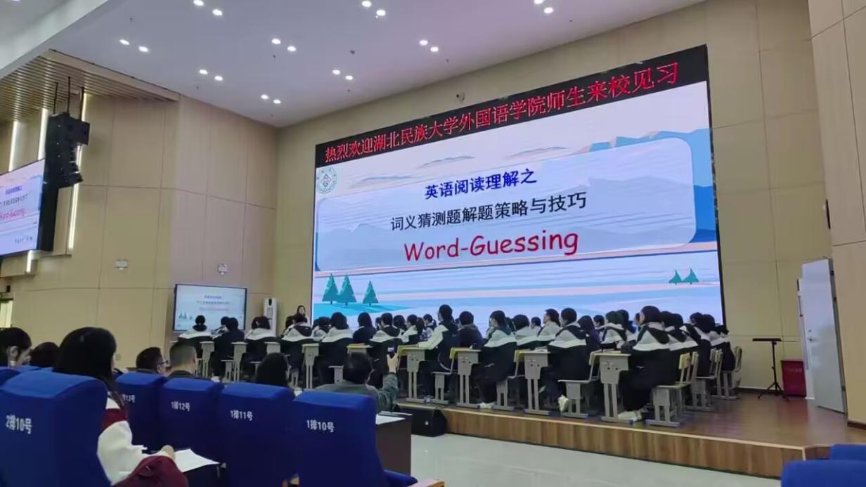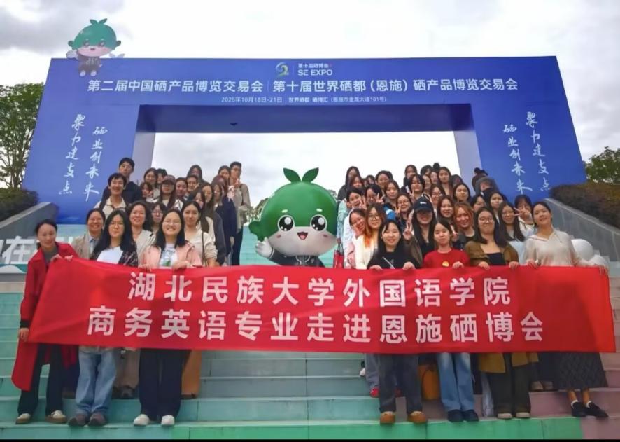 除开启职业认知,学院还为大三学生锤炼专业能力搭建起对接职场的实践平台。商务英语专业学生进驻恩施硒博汇,从用双语生动讲解硒文化、传播硒产品价值,到协助开展展品运维协调、保障展会有序运行,学生们将课堂上学到的商务沟通技巧、项目统筹方法充分运用到实际工作中,让专业能力在实践中得到切实提升。英语专业学生则走进恩施高中、恩施市第一中学,沉浸式感受中学教育场景,旁听优秀教师的课堂教学,学习先进的教学方法与课堂管理技巧,与在校师生深入交流,为学弟学妹分享英语学习经验与备考心得。“以前总觉得教英语只要掌握好知识点就行,真正接触课堂才明白,怎么把知识讲明白、讲进学生心里,才是更重要的事。” 参与见习的学生回来后坦言。
