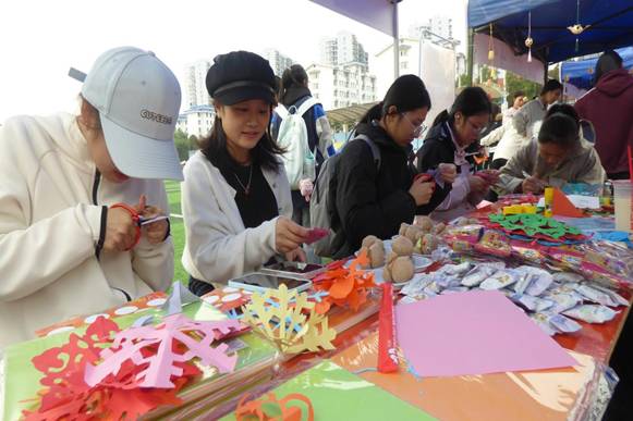 时间:2025-11-18 编辑:办公室 点击:11月15日,湖北民族大学第十届中华民族文化节在五环运动场隆重开幕。本届文化节以“多彩文化韵,千年中华情”为主题,通过民族体育展演、非遗体验、民俗互动等多元形式,展现中华民族文化的交融共生。外国语学院主要承办剪纸和脸谱非遗体验活动。
