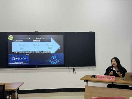 11月30日晚,由湖北省知识产权培训(恩施)基地承办的“人工智能对版权法的挑战”专题讲座在我校德智楼9B308教室顺利举行。本次讲座特邀重庆邮电大学副教授、硕士生导师、“文峰青年百人”、加拿大渥太华大学国家公派联合培养博士,我院2008级法学专业校友黄薇君担任主讲人,由湖北民族大学法学院教授、湖北省知识产权培训(恩施)基地负责人杨信主持。法学院2024级、2025级全体研究生参加了此次活动。
