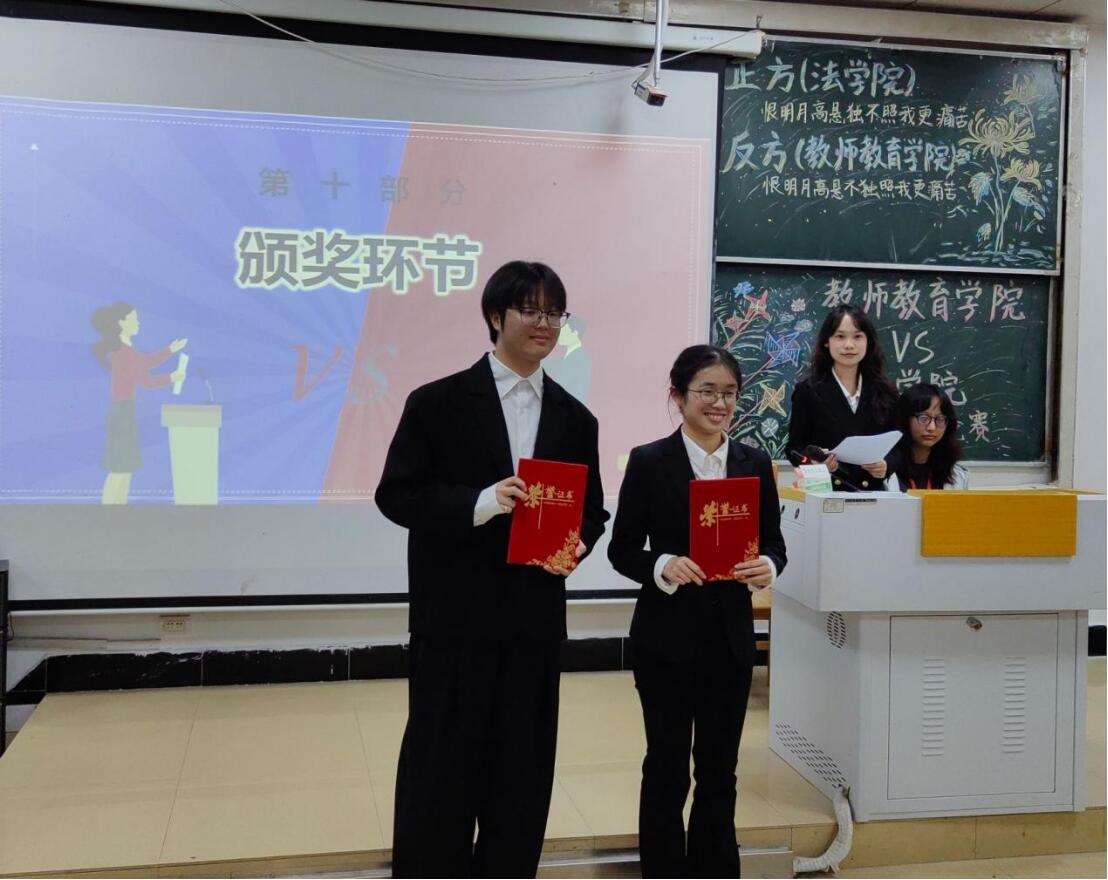 2025年11月8日,我院与教师教育学院于德智楼9B301教室举行“群雄争辩,谁与争锋”友谊辩论赛。
