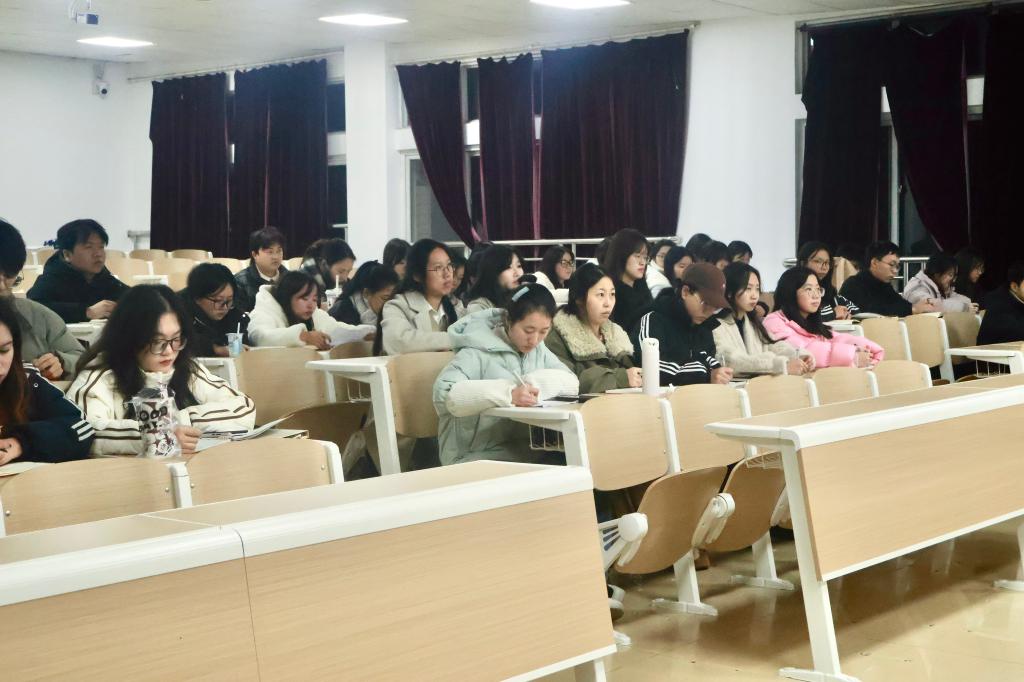 2025年12月21日,我院党总支书记张明波于德智楼9B301教室进行主题为“深入学习贯彻党的二十届四中全会精神 奋力开创中国式现代化新局面”的理论宣讲。我院50余名学生入党积极分子、预备党员、正式党员参加学习。