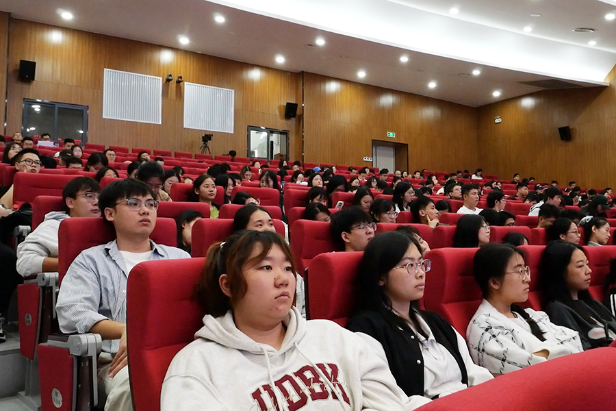 朱仁山以“弘扬科学家精神,为粮食安全作贡献”为主题,深入阐释了科学家精神的深刻内涵,系统解读了“爱国、创新、求实、奉献、协同、育人”六大精神的核心要义。他详细介绍了杂交水稻与粮食安全的重要意义和我国杂交水稻科研育种现状,生动讲述了袁隆平、黄耀祥、周开达、朱英国等杂交水稻科学家的感人故事及其蕴含的杂交水稻精神。他呼吁要不断提升自主创新能力,加强核心技术突破,实现高水平科技自立自强;要有勇当排头兵的责任与担当,引领行业发展方向,推动科技创新和发展;要建立完善的人才培养机制,培养具有国际视野和创新精神的科技人才,加强国际合作交流拓展新兴领域,共同推动科技进步和社会发展。他以校友黄云书扎根基层助农脱贫、桑子阳探索“林药蜂”立体种养模式的案例倡议广大青年学生勇担社会责任,助力社会发展。