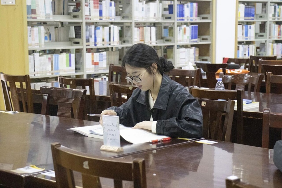 胡裕君在图书馆学习
