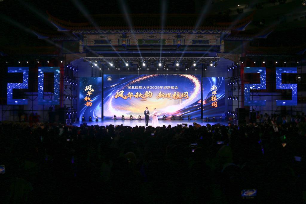 10月24日,湖北民族大学“风华秋韵 新耀桂园”2025年迎新文艺晚会在大学生广场举行。学校党委书记戴清堂,党委常委、纪委书记、监察专员张宏磊,党委常委、副校长李军到现场与师生一起观看晚会。晚会现场晚会分为“青春逐光”“同心筑梦”两个篇章,通过歌伴舞、情景剧、武术、科创展示等多元艺术形式,折射出民大学子的青春激情与时代风貌。现场观众的欢呼与掌声,将秋日校园晕染得热烈而温暖。经济与管理学院的歌伴舞《像你这...