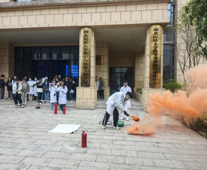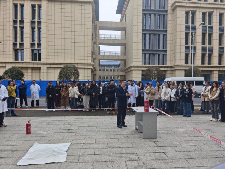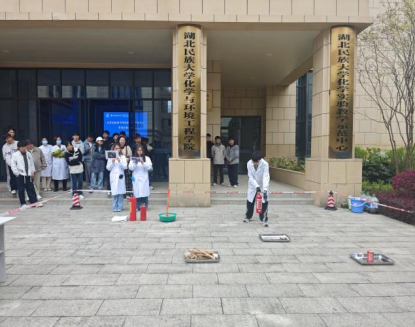 安全第一,生命至上。为强化实验室安全管理,提升师生应对实验室火灾事故的应急处置能力,筑牢校园安全防线,4月2日下午,学院联合生物与食品工程学院在工程中心B栋前举行实验室不同类型火灾应急演练活动。化学与环境工程学院党总支书记桑秋章,院长李国祥出席活动,保卫处、实验室建设与管理处、学院实验中心主任、实验室管理人员和学生200余人参加演练。