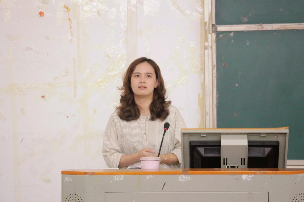 优秀教师代表李庆玲讲话。她指出,大学校园包容自由,能为学生成长提供广阔空间,并表示自律是自我约束、自我管理,学生应合理规划时间,专注学业,以扎实的学识积累增强未来选择的底气。