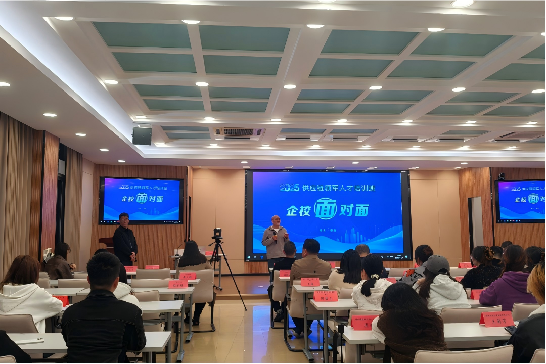 本网讯(记者 吴德一/文)2025年11月7日,湖北省重点物流企业与经济与管理学院联合开展的“企校面对面”交流活动在德智楼远程观摩室举行。多位企业高管应邀出席,经济与管理学院党委副书记张姣蓉、学生科负责人解丽娟,以及学院各专业学生代表参加此次交流会。
