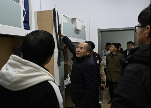 随后,李军副校长一行走访了博学7栋学生宿舍,实地察看学生住宿环境,与同学们亲切交流,细致询问他们的日常生活、学业进展和实际需求,叮嘱大家要互相关心、共同进步。