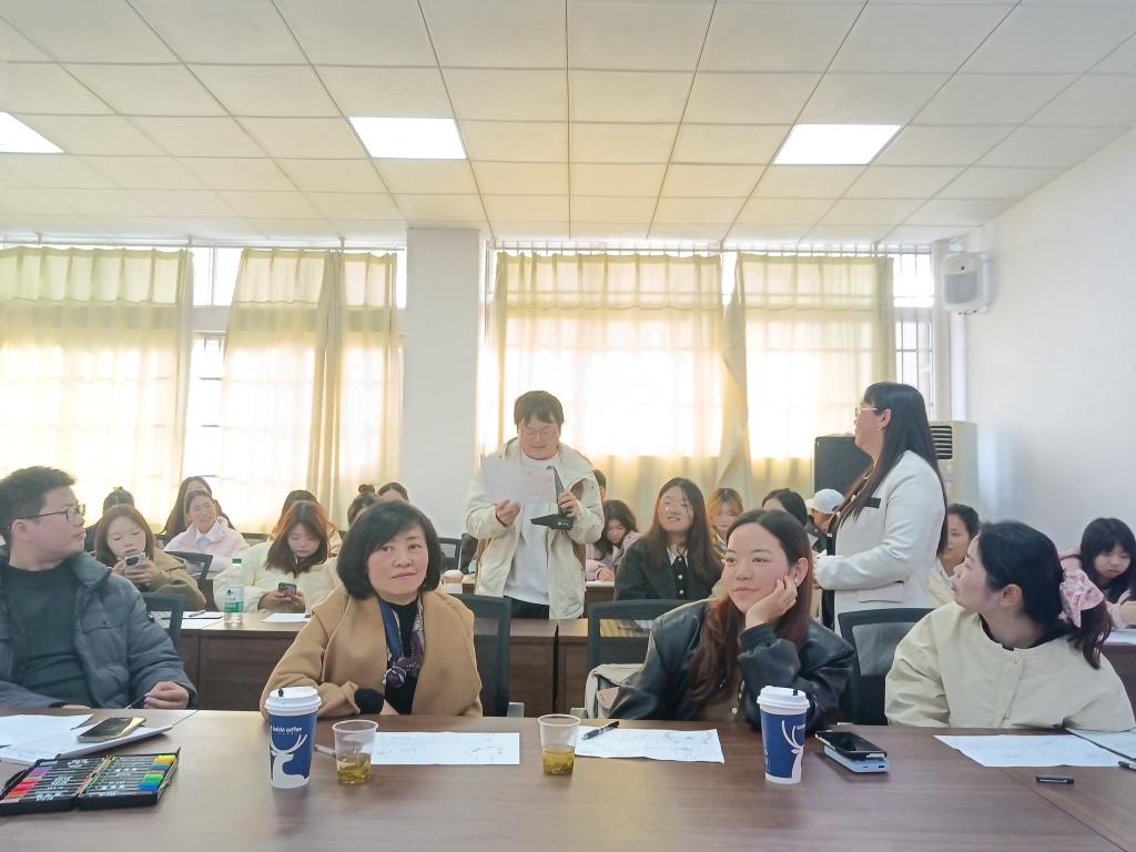 张妍教授常年深耕心理健康教育、认知神经科学领域,担任湖北省基础心理学专业委员会副主任委员,武汉市心理学会第十三届理事、脑成像专业委员会副主任,湖北省婚姻家庭研究会会长,兼具深厚学术积淀与丰富实务经验。张教授带领全体师生进行了绘画疗法的体验,通过“自画像”“心灵魔法壶”“多维添加画”等活动,现场分析绘画者的性格特点和认知风格。在此基础上,张教授系统介绍了绘画疗法的理论,并为绘画疗法在多主题和多群体心理咨询中的应用提供了实践参考。