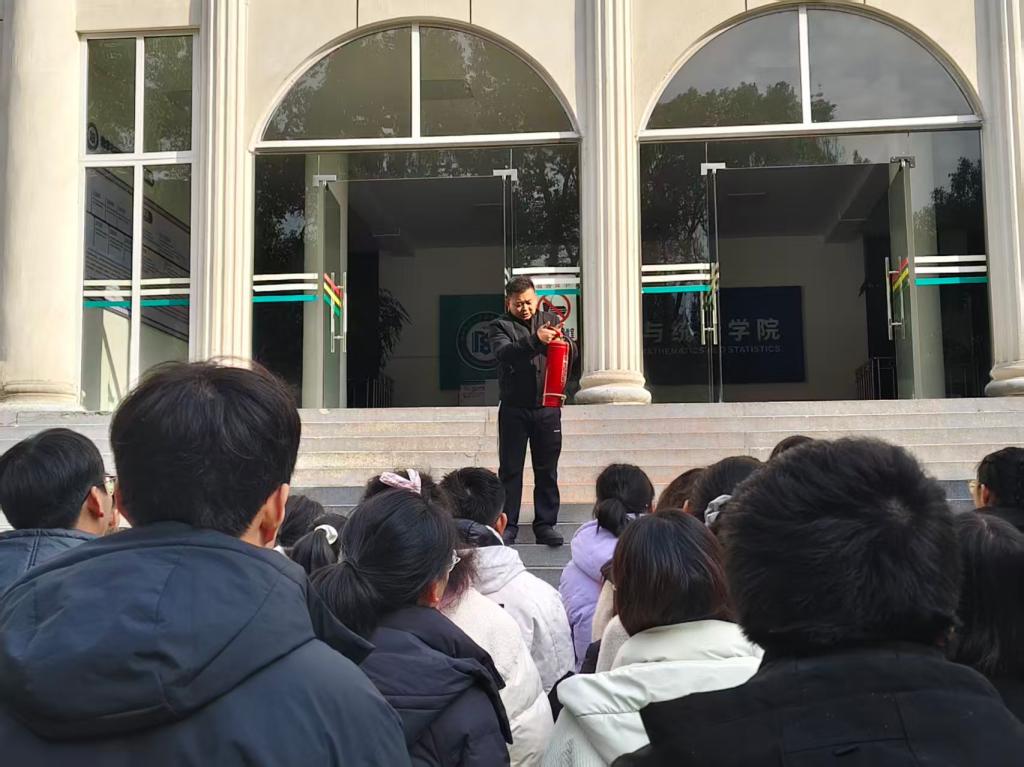 12 月 25 日下午数学与统计学院组织全体师生开展消防逃生自救演练及灭火器具使用教学活动,以切实提升全院师生的消防安全意识,帮助师生熟练掌握火灾防范知识与应急逃生技能,增强初步自救互救能力,筑牢校园安全防线,演练全程秩序井然、成效显著。