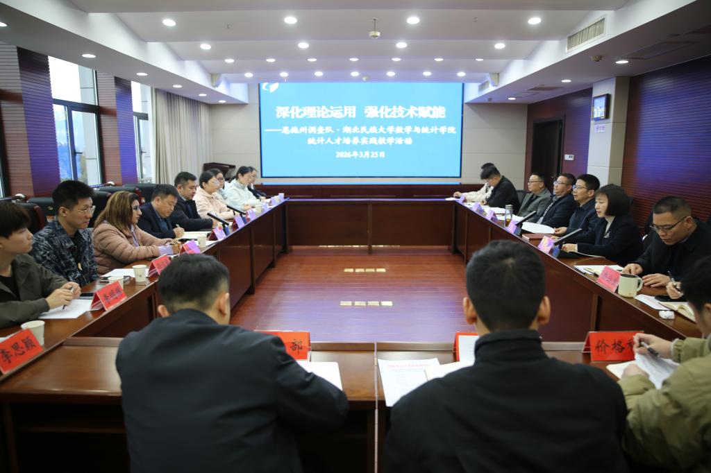 3月25日下午,我院与国家统计局恩施州调查队联合举办的统计人才培养实践教学活动在恩施州调查队会议室举行。本次活动以“深化理论应用,强化技术赋能”为主题,旨在推动统计学科与地方实践深度融合,探索校地协同育人新路径。恩施州调查队党组书记、队长官民,副队长董学慧,纪检组长李怀洲,相关业务科室负责人,数学与统计学院党总支书记、中国政府统计课程负责人魏代俊,数据挖掘与机器学习负责人王宁奎、Mona Abas Mokbial Salim及应用统计研究生代表参加活动。