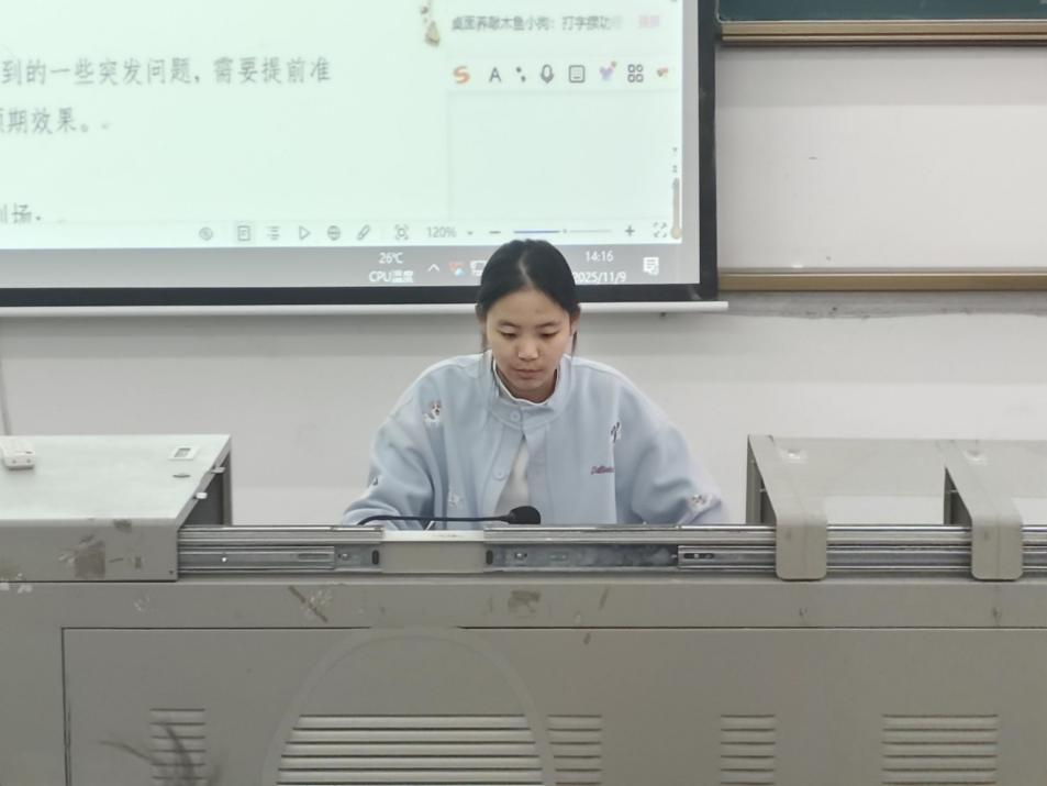 培训伊始,王玉章围绕活动策划撰写与报账材料规范展开集中授课。她结合学院往期活动案例,从策划书的框架搭建、内容逻辑、任务分工及风险预案等方面系统讲解,强调活动目的要清晰、流程设计要合理、材料提交要规范。随后,她详细说明了报账材料的填写与审核流程,提醒学生干部在实际工作中要严谨细致,确保各环节准确无误、衔接顺畅。