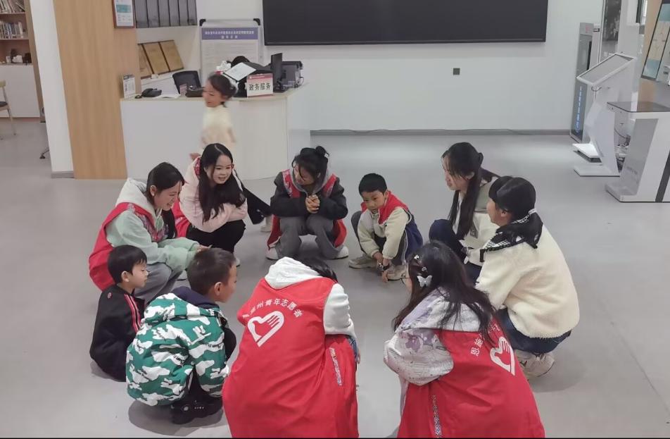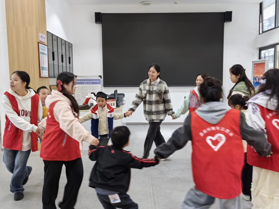 活动现场设置了“作业辅导答疑”“数字抱团”“丢手绢”三个环节。在“作业辅导答疑”环节,志愿者们耐心为孩子们辅导功课,帮助孩子们巩固课堂所学,解决作业中的困惑,培养良好习惯。随后的“数字抱团”游戏将现场气氛推向高潮,孩子们与志愿者手拉手围成圆圈,根据志愿者报出的数字迅速寻找伙伴组成指定人数的团队,在奔跑与协作中不仅提升了对数字的灵敏性和快速计算能力,更锻炼了团队协作与反应能力。最后的“丢手绢”游戏充满悬念与挑战,熟悉的旋律响起,孩子们围坐一圈全神贯注,手绢落下时的追逐让现场欢笑声、加油声此起彼伏,既让孩子们体验到传统游戏的乐趣,也有效锻炼了观察力和身体协调性。