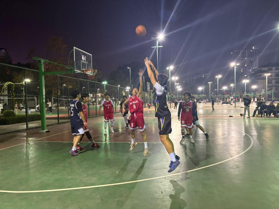 为丰富校园文化生活,增强学生体质,提升班级凝聚力,2025年11月14日晚,数学与统计学院“迎新杯”篮球冠军争夺赛在团结广场举行。参赛队伍为2023级数学3、4班篮球队与2024级数学3、4班篮球队,赛场氛围热烈,观众助威声此起彼伏。