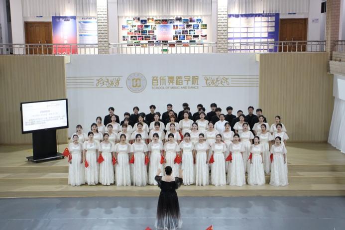 音乐会现场,舞蹈、弹唱、四重奏、茶艺表演、大合唱等文艺节目依次上演,现场掌声持续不断。从《半山听雨》的悠扬箫声,到《大江东去》的激昂旋律;从古筝伴奏下的茶艺展示,到《把一切献给党》的豪迈高歌,音乐舞蹈学院师生与政协委员联袂登台,共同呈现一场兼具民族特色与红色底蕴、融合艺术质感与精神力量的视听盛宴。演出带领观众回顾历史、展望未来,既传递出政协与党同心同德、共创伟业的坚定信念,也展现了祖国大好河山与新时代繁荣景象,进一步激发观众团结一心、共赴新征程的豪情壮志。音乐会尾声,湖北民族大学合唱团登场,以一曲气势恢宏的大合唱《歌唱祖国》点燃全场氛围。台下观众纷纷举起手中红旗,伴随激昂旋律起身站立,用深情歌声与合唱团隔空呼应,真挚的爱国情怀在现场久久回荡。