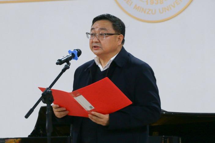 州政协党组书记、主席吴建清讲话。他表示,这不仅是一场兼具艺术性与观赏性的高水准艺术盛宴,更是一次以艺术为桥梁的文化传承实践,既传承弘扬了中华优秀传统文化与红色经典文化,也成为凝聚各界共识、增强凝聚力与向心力的生动载体。他高度肯定了湖北民族大学音乐舞蹈学院的办学成果,学院始终牢记初心使命,坚持立德树人根本任务,已发展成为基础扎实、学风优良、充满活力且特色鲜明的音乐舞蹈专业人才培养基地。