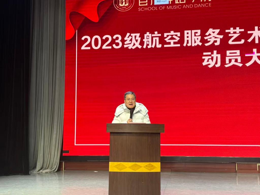 2025年12月30日,为进一步提升航空服务艺术与管理专业实习效果,强化学生管理,我院2023级航空服务艺术与管理专业实习动员大会在演播厅成功举办。音乐舞蹈学院党总支书记张蕊、副书记邓丽、副院长王松,各科室负责人、广慧金通公司教师代表、2023级航空服务艺术与管理专业全体学生参加活动,会议由系部负责人苏远航主持。