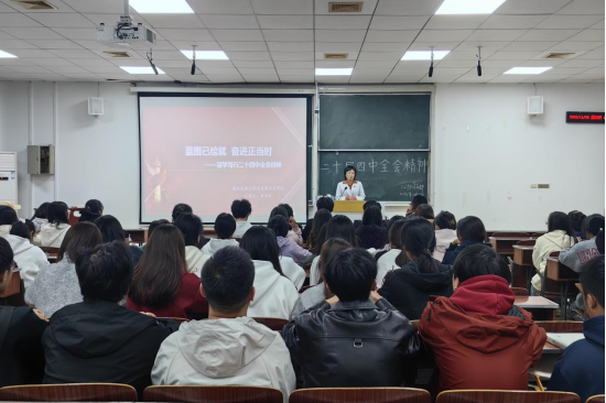 为深入学习贯彻党的二十届四中全会精神,引导青年学子将个人理想融入国家发展大局,11月2日,我院在德智楼9B210教室开展学习党的二十届四中全会精神专题教育活动,我院副教授黄玉红老师担任主讲人。大一全体学生及学生党支部全体党员参加活动。