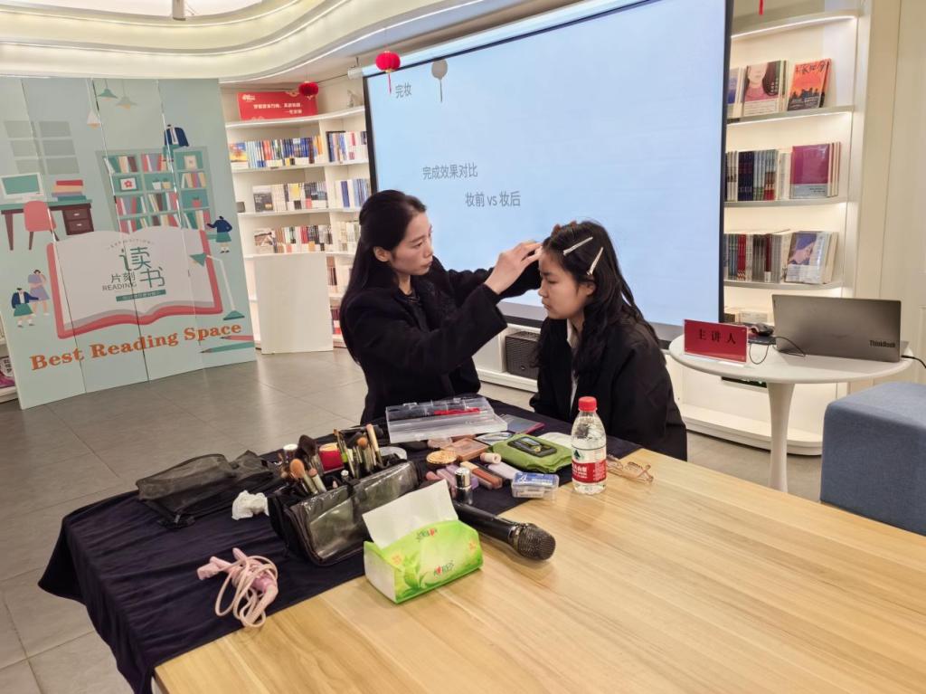为精准契合女生成长发展需求,提升学子形象管理能力与礼仪素养,助力跨文化交流与职场发展,3月19日下午,湖北民族大学外国语学院在倍阅书店顺利开展“悦己・悦人”形象美妆礼仪课堂,为全院女生带来一场兼具实用性与专业性的素养提升盛宴。