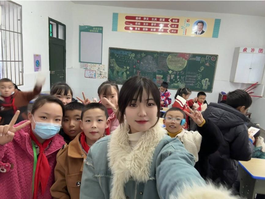 支教,是卢李馨展现青年担当最温暖的诠释。2023年至2025年,她在大学生心连心互助社支教部担任心理老师。那段时光里,最触动她的,是每次抵达时,孩子们趴在教室窗口向她奋力招手的身影。正是这扑面而来的热切,让她明白,“支教并不是单方面的给予,而是双向的治愈。”她珍惜课间的欢笑,也常在课后安静倾听,小心守护着孩子们心底的秘密与梦。“他们给予的,是一种毫无保留的信任。”这份信任,让她看见自己行动的意义。离别前夕,卢李馨将大学旅行中收集的各地纪念品,连同手写祝福的贺卡,放进孩子们手心。“愿这些小礼物,能帮他们打开眺望世界的窗口。”她动情地说。
