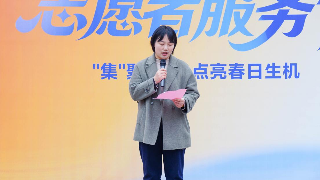 开幕式上,“大学生心连心互助社”社长向昊天作为学生代表分享了自己的志愿故事。他在民大求学的两年多时间里,累计参加92次志愿服务,总时长超过600小时。他用朴实的话语讲述了自己在志愿服务中的点滴收获与成长,表示“在帮助他人的过程中,也照亮了自己”,并号召更多同学加入到志愿服务的行列中来。随后吴珊老师上台致辞,向积极参与志愿服务的同学们表示衷心感谢。她寄语全体师生,要将志愿精神融入日常、落到实处,以青春之力传递公益温暖,让志愿服务成为校园新风尚,让爱心从民大出发,传递到更多地方。