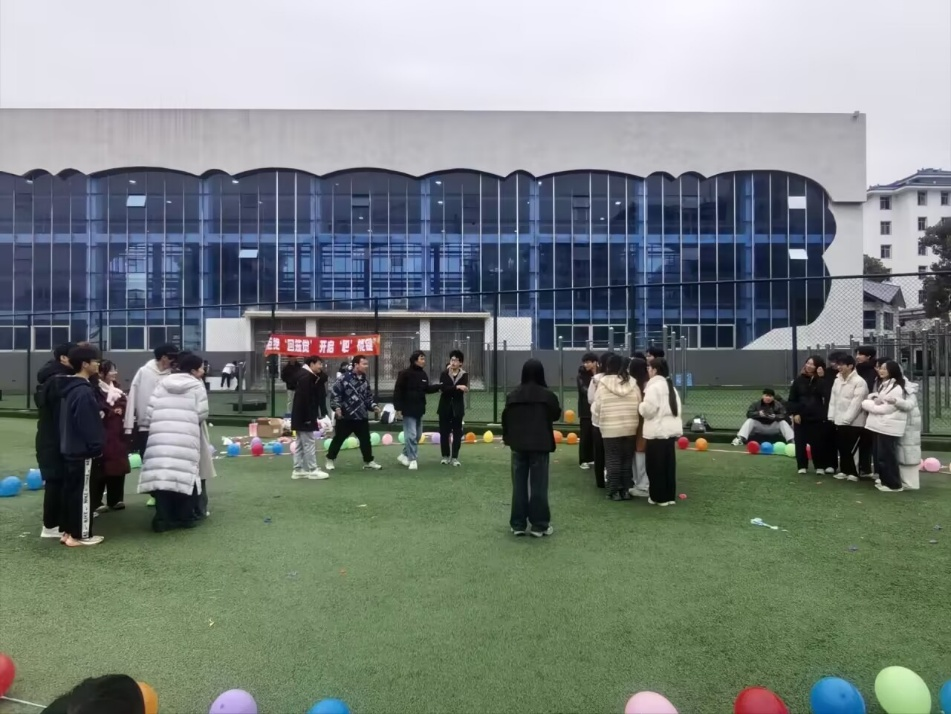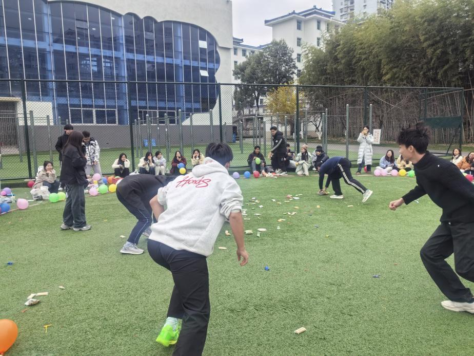 主持人介绍流程并完成点名后,活动在轻松活泼的氛围中正式开始,“踩气球大作战”“反向指令”“五毛一块”等趣味游戏吸引同学们积极参与,现场欢声笑语不断。游戏中配合默契的获胜队伍获得了专属印章作为奖励。
