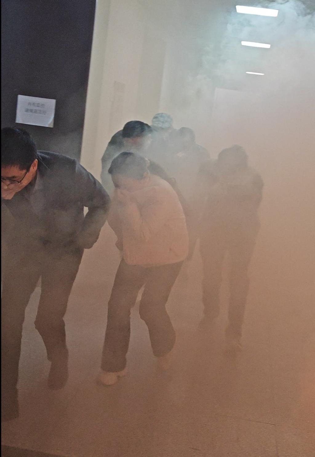 上午10时30分,随着演练指令的发出,消防安全紧急疏散演练正式拉开帷幕。各楼层负责教师迅速就位,按照预定疏散方案,引导师生用湿毛巾捂住口鼻,弯腰低姿,沿着指定疏散路线快速、有序地撤离至安全集结区域,迅速向总指挥报告集合人数。整个疏散过程紧张而不慌乱,迅速而有序,达到了预期效果。