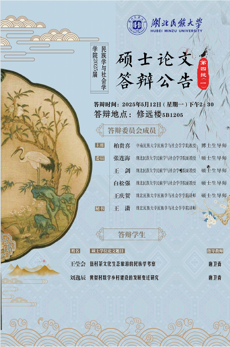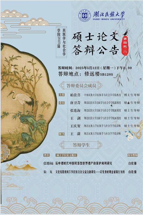 民族学与社会学学院2025届硕士学位论文答辩公告(5月12日)