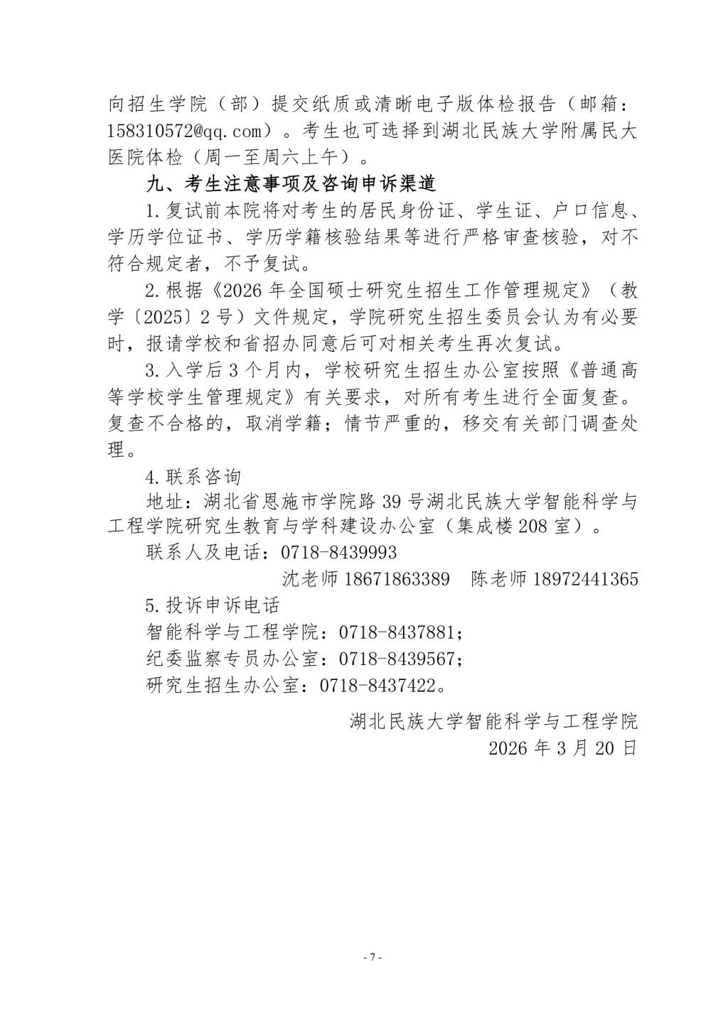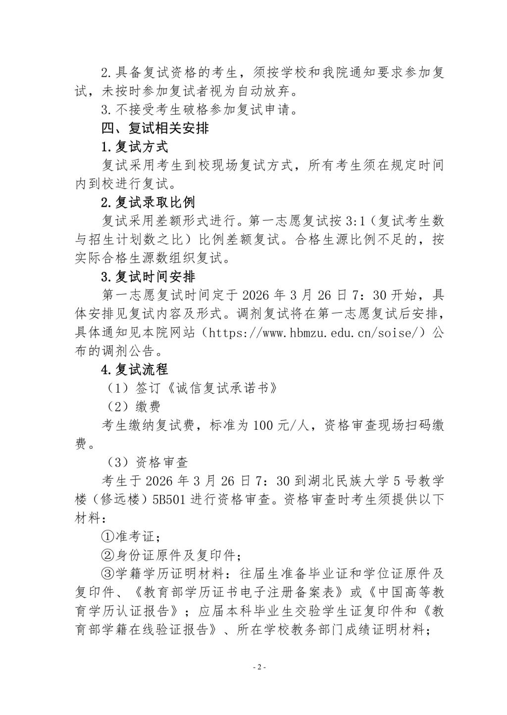 湖北民族大学智能科学与工程学院2026年硕士研究生复试录取工作实施细则