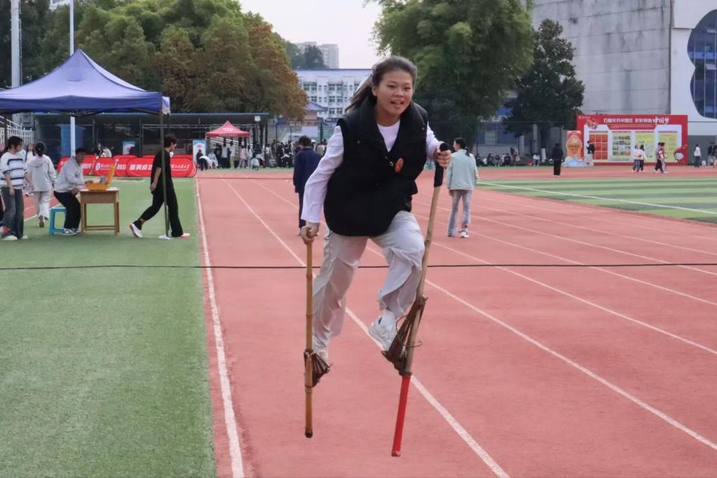 运动会现场气氛热烈,来自各学院的参赛队伍在板鞋竞速、高脚竞速、押加、蹴球、毽球等传统体育项目中展开友好竞技和兴趣体验。这些承载着各民族历史记忆与文化智慧的运动项目,不仅考验着参与者的身体素质与协作能力,更让广大学生在亲身体验中加深了对中华优秀传统文化的理解与认同。