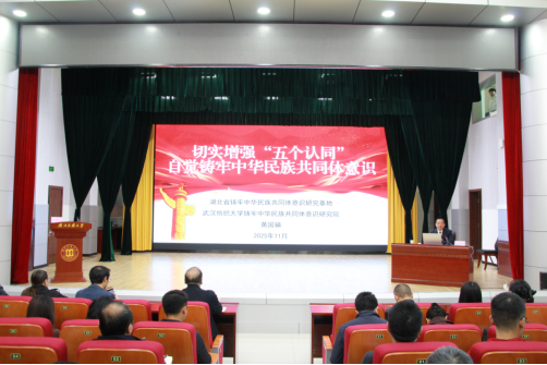 11月13日,湖北民族大学铸牢中华民族共同体意识主题宣讲会在行政楼一号会议室举行。本次宣讲会特邀湖北省铸牢中华民族共同体意识研究基地(中华文化符号形象研究中心)主任、武汉纺织大学铸牢中华民族共同体意识研究院院长、硕士研究生导师黄国辅教授担任主讲人。学校党委常委、纪委书记张宏磊出席并主持宣讲会。
