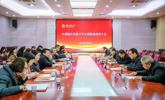 12月30日,民盟湖北民族大学支部委员会召开换届选举大会,全面总结第六届支部委员会工作,选举产生第七届支部委员会。湖北民族大学党委常委、统战部部长田景福,恩施州政协副主席、民盟恩施州委主委何义发出席会议并讲话。湖北民族大学党委统战部常务副部长丁莉、民盟恩施州委副主委傅浩参加会议。民革湖北民大支部主委高仕红、民盟恩施职院支部主委刘涛到会祝贺。