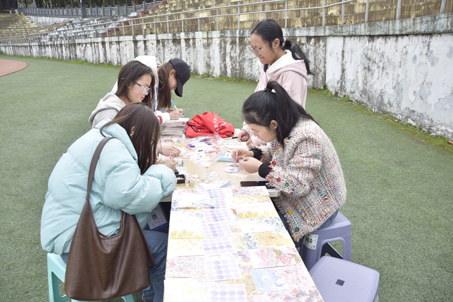 本网讯(记者 李蓉华/文 简家栋 董安洋/图)3月22日,共青团湖北民族大学文学与传媒学院委员会社会实践与志愿者工作部在民族体育场开展以“微光汇聚非遗路,共燃雷锋薪火情”为主题的非遗文化进社区活动。以“非遗体验+志愿服务”双轮驱动,让非遗文化与青春志愿在校园绽放新光彩。