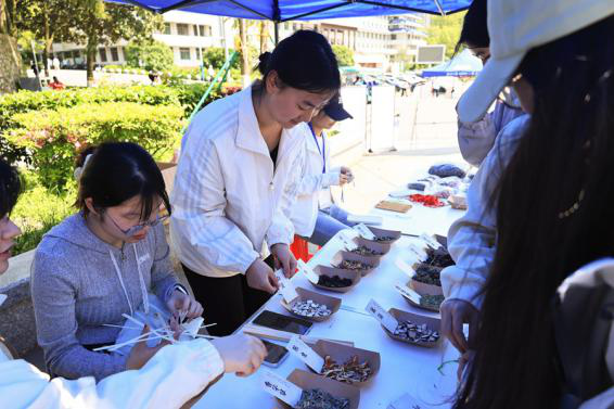 本网讯(记者 谢逸夫 董家怡/文 李悠然/图)4月16日,非物质文化遗产研习学社在大学生广场开展以“古韵润校园,文脉贯古今”为主题的特色活动。