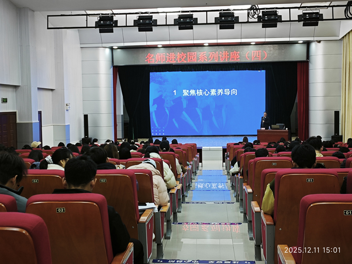 (本网讯 文/蒋林君 图/王思云)2025年12月11日,文学与传媒学院"名师进校园"系列讲座第四期在行政楼一号会议室开讲。恩施市小渡船中学校长陈劲松应邀作《核心素养视域下的课堂教学重构》专题报告,学院副院长江佳慧主持活动,百余名师生现场聆听。 陈劲松校长以"渗透核心素养背景下的课堂教学实...