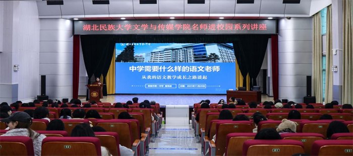 本网讯(通讯员 王思云/文 阎裕如/图)11月20日,恩施市一中党委副书记、校长童海波应邀莅临我校,在行政楼一号会议室开展名师进校园系列讲座。讲座由文学与传媒学院副院长江佳慧主持,部分教师代表与2023级汉语言文学专业学生共同参与。童校长围绕“中学需要什么样的语文老师”,以自己二十年语文...