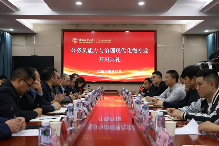 本网讯(记者 宋正悦 杨旭/文 阎裕如 姚冰冰 贺从蕴/图)10月19日,我院在智慧教室一隆重举行“公务员能力与治理现代化”微专业开班典礼。开班典礼现场武汉毕上教育科技公司董事长夏晓华、湖北民族大学党委宣传部常务副部长罗翔宇教授、教务处副处长易金桥教授、文学与传媒学院党委书记张刚、院长张...