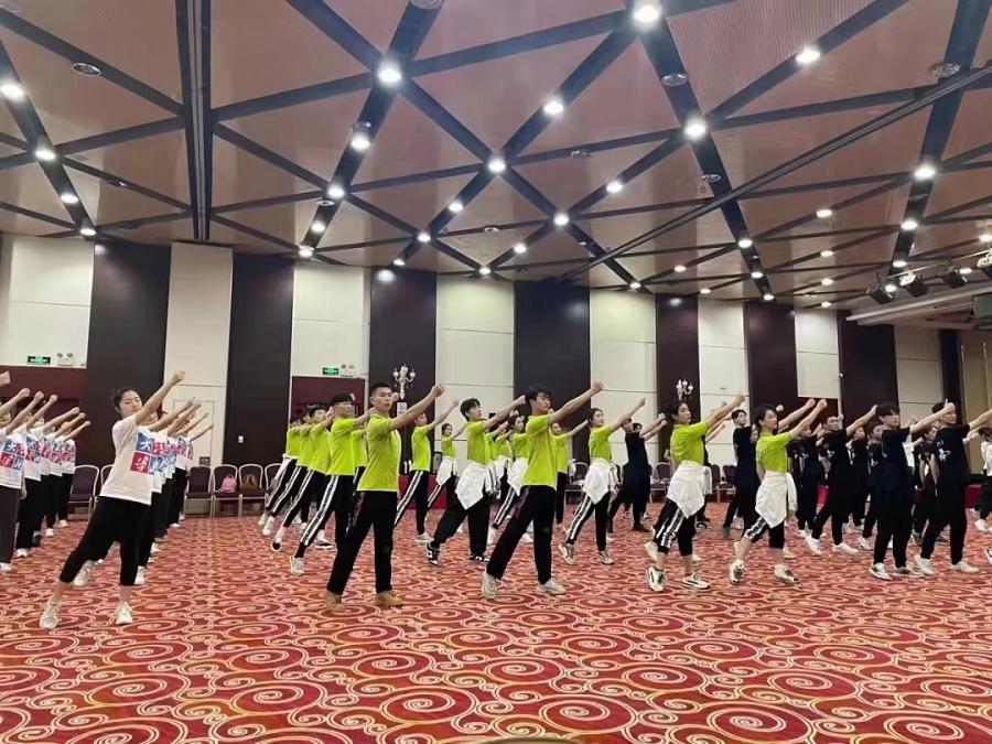4月13日,参演师生们抵达北京。为了严守疫情防控相关规定,他们在指定酒店进行了17天的封闭式排练。毛伟臣告诉记者:“作为带队老师,在疫情不断反弹的关键时期,学生们的出行和疫情防控成为了我最担心的首要因素。”为了确保此次出行安全,学校全力以赴做好后勤保障,为师生准备了大量的防疫物资,并在前期组织参演学生每日进行三检和定期核酸检测。为了能够以最完美的姿态呈现表演,师生们在到达北京的第二天就开始了排练,每天只有四五个小时左右的休息时间。由于北京的天气比较干燥,部分同学出现了水土不服、流鼻血的状况。随着正式演出的时间一天天逼近,时间紧任务重,在精神和身体的双重压力下,师生们克服了排练中遇到的一个一个难题。