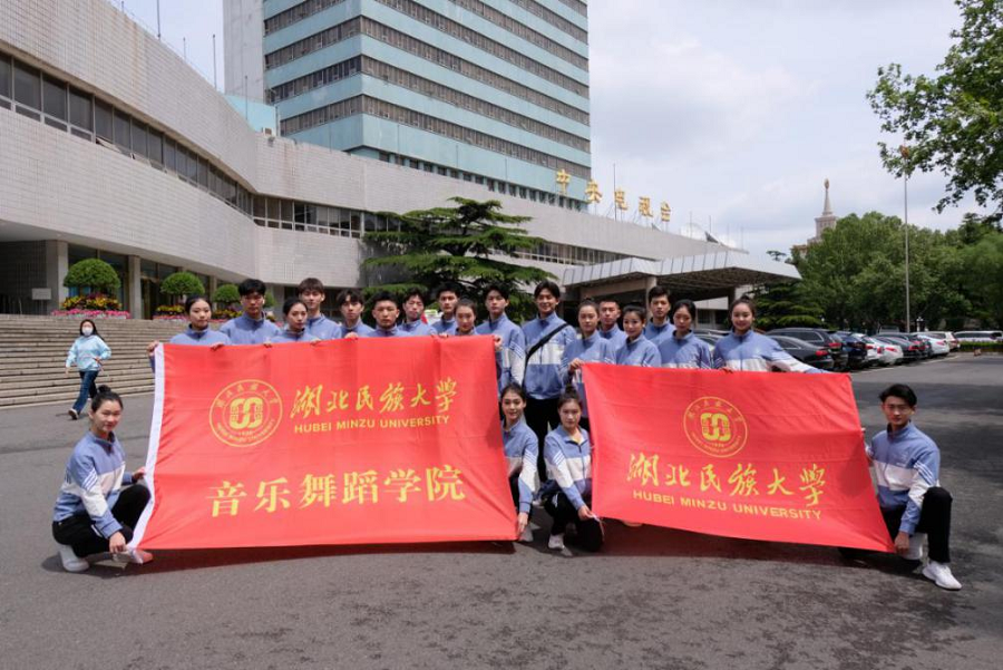 彩排期间学生们保持高度的专注,将所有精力投入到训练当中,将每一次排练都当成正式的演出对待。提到在北京封闭排练的日子,毛伟臣老师仍然记忆犹新:“我会先学习相关的动作,在学生们遇到问题时以自身经验为学生指点。排练期间我一直陪伴着同学们,做好后勤保障工作,努力为他们创造一个良好的训练氛围。排练期间,我校学生受到导演组多次夸奖,作为湖北民族大学的一份子,我们都很自豪。”