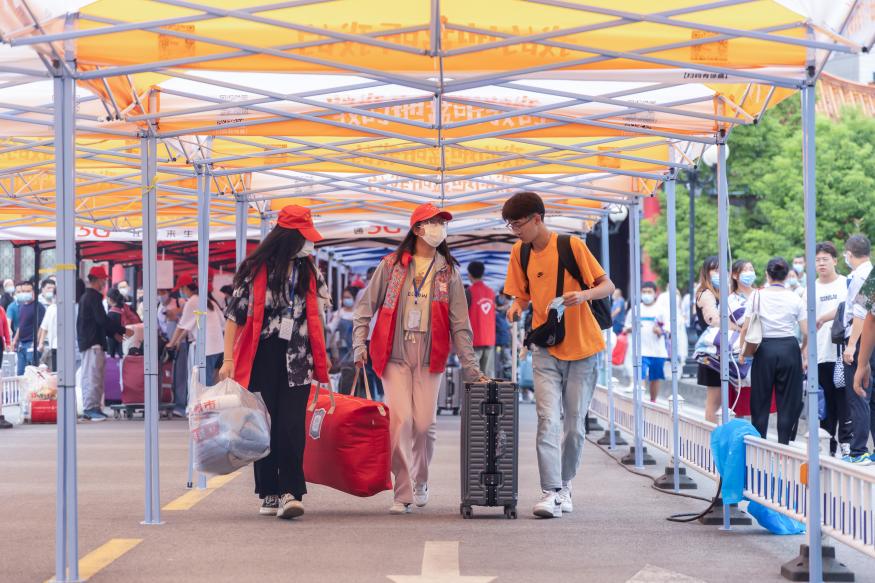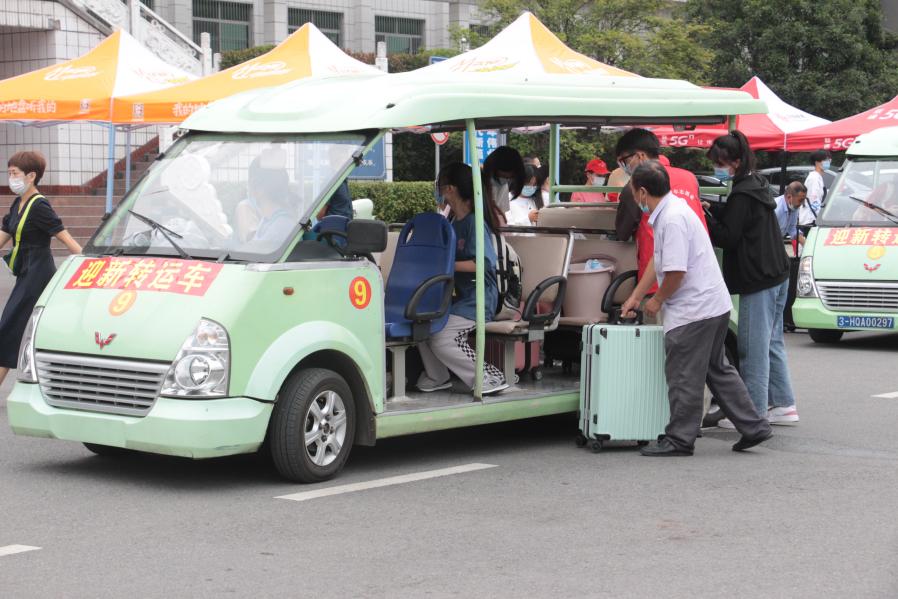 “您好,请问立人3栋怎么走?”“从这里走上去就到了。”“可我还是不知道怎么去。”看着怯生生、面露难色的新生,身着红色马甲的志愿者立即接过行李,“别害怕,我们安排车送你去。”迎新志愿者坚守在不同的站点,帮助新生将行李搬运至迎新车辆上并耐心解答新生疑问,全方位开展志愿服务。寝室楼栋,宿管阿姨亲切和蔼地将提前拟好的信息登记表递给新生填写,并分发寝室钥匙。各院报到点前贴着醒目的红色横幅,迎接新生的到来。大学生广场上,学校为家庭经济困难学生开设“绿色通道”。学生工作处、财务缴费咨询等相关单位搭建迎新帐篷,等待新生报到、购置军训服,为新生解疑答惑。校园超市在新生相对集中的宿舍楼设有现场购买服务点,方便新生购买生活必需品,并为购买量大的新生送货上门。