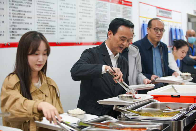 向前进和同学们取餐